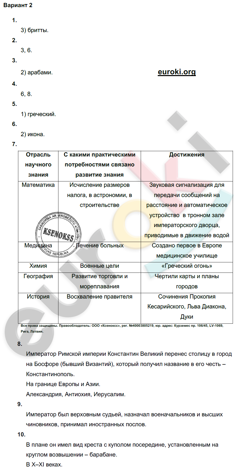 ГДЗ История 6 кл. Крючкова Контрольные 2023