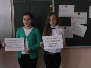 Учитель. — Сегодня у нас состоится не совсем обычное соревнование- турнир добрих и вежливых ребят. А девиз у нас такой — «Добро творить – себя веселить».